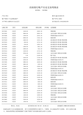 私人账户流水指的是客户自己本人名下的银行卡(借记卡)或者银行活期存折,在一段时间内与银行发生存取款业务交易清单明细。